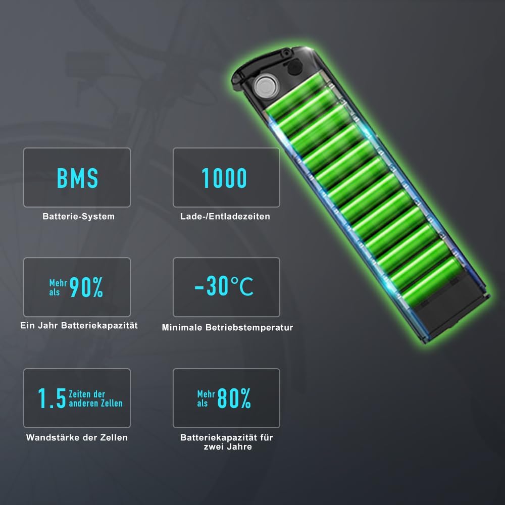 26T1 E-Bike 26 Zoll, 36V 18,2Ah Akku abnehmbar, 250 W Motor, 7-Gang, Reichweite 90–130 km, bis 25 km/h, IPX5, LCD-Display