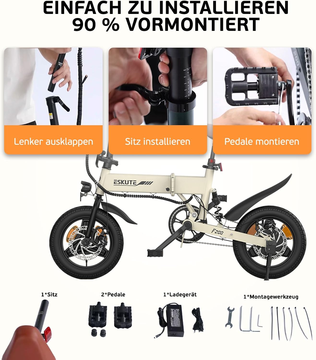 ESKUTE 14” Klapp E-Bike F200 – ultrakompakt, 250W, 36V 7,8Ah, bis 50 km