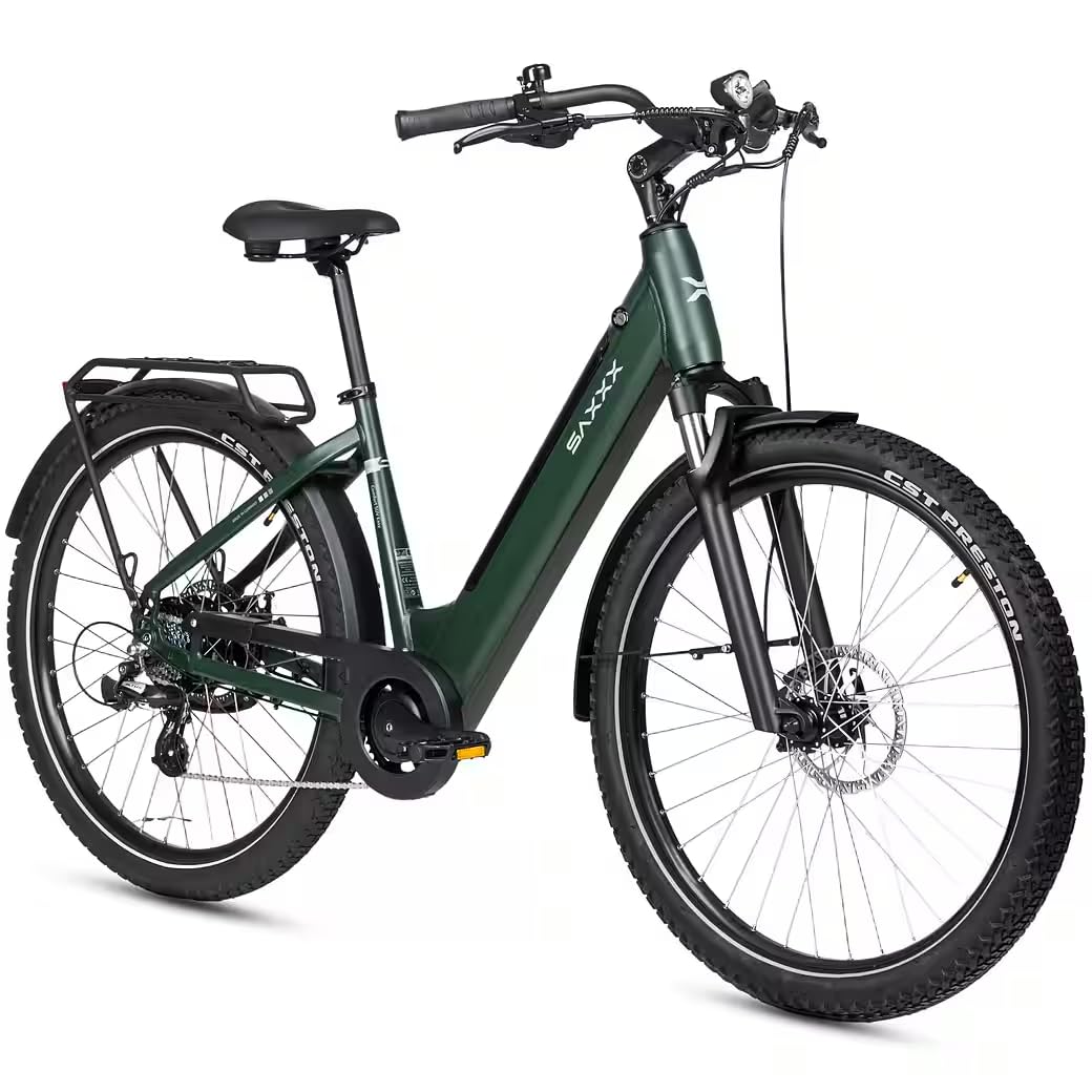 SAXXX E-Bike 28 Zoll Tiefeinsteiger, 36V 13Ah Akku, 7-Gang, Scheibenbremsen, Federgabel, Gepäckträger, Pedelec für Erwachsene