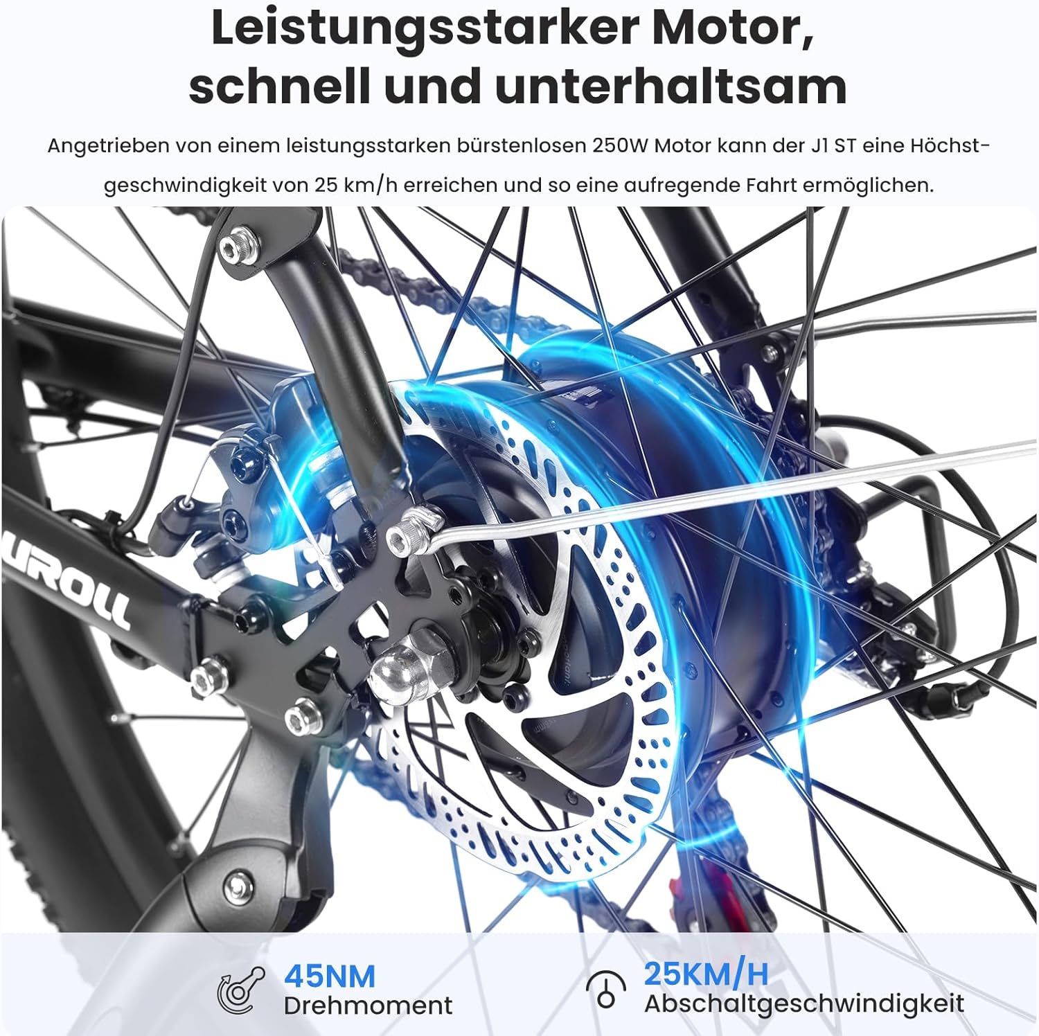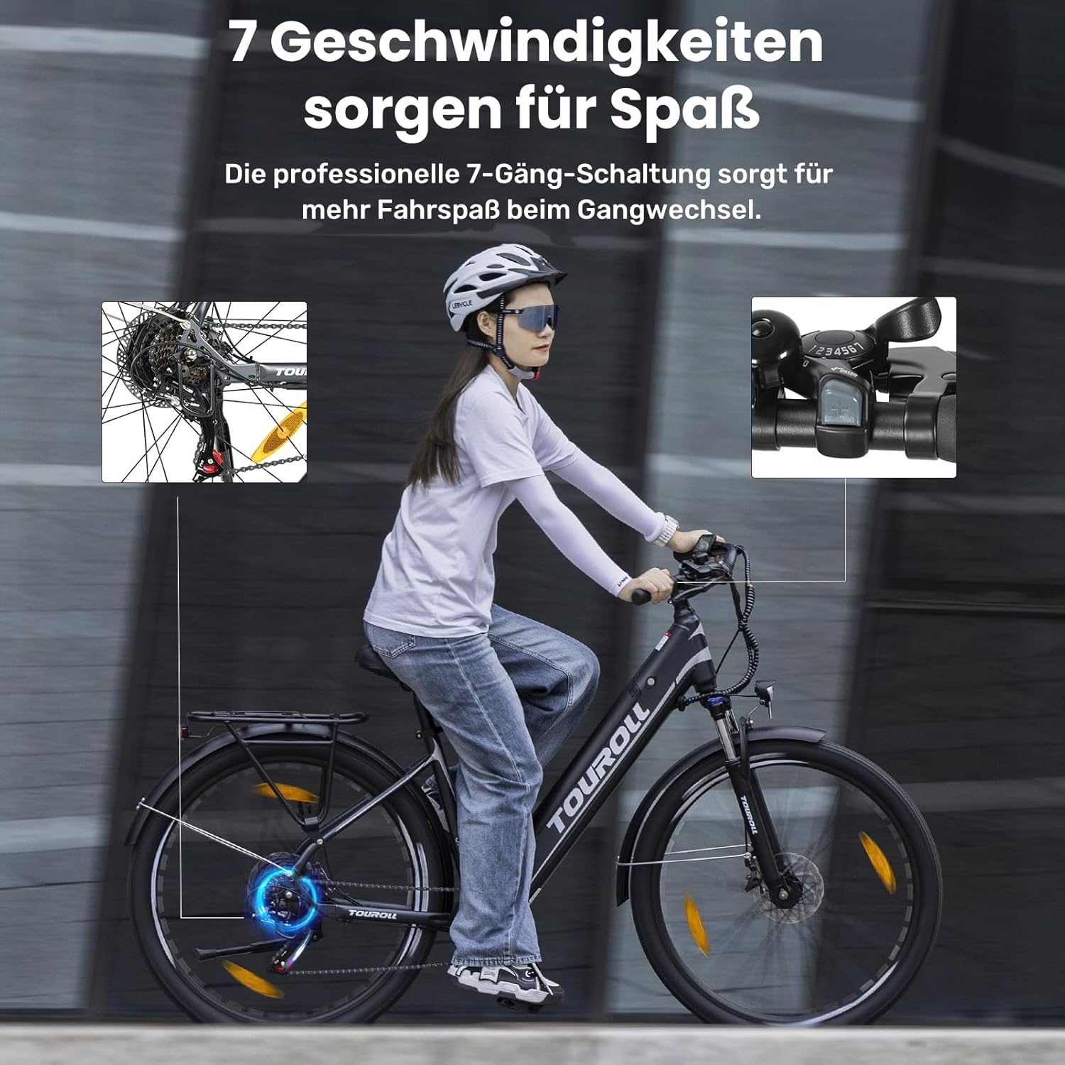 Touroll J1 ST E-Bike 27,5 Zoll, 561,6 Wh Akku, bis 100 km, 250 W Motor, 7-Gang, Trekking/City Pedelec für Erwachsene